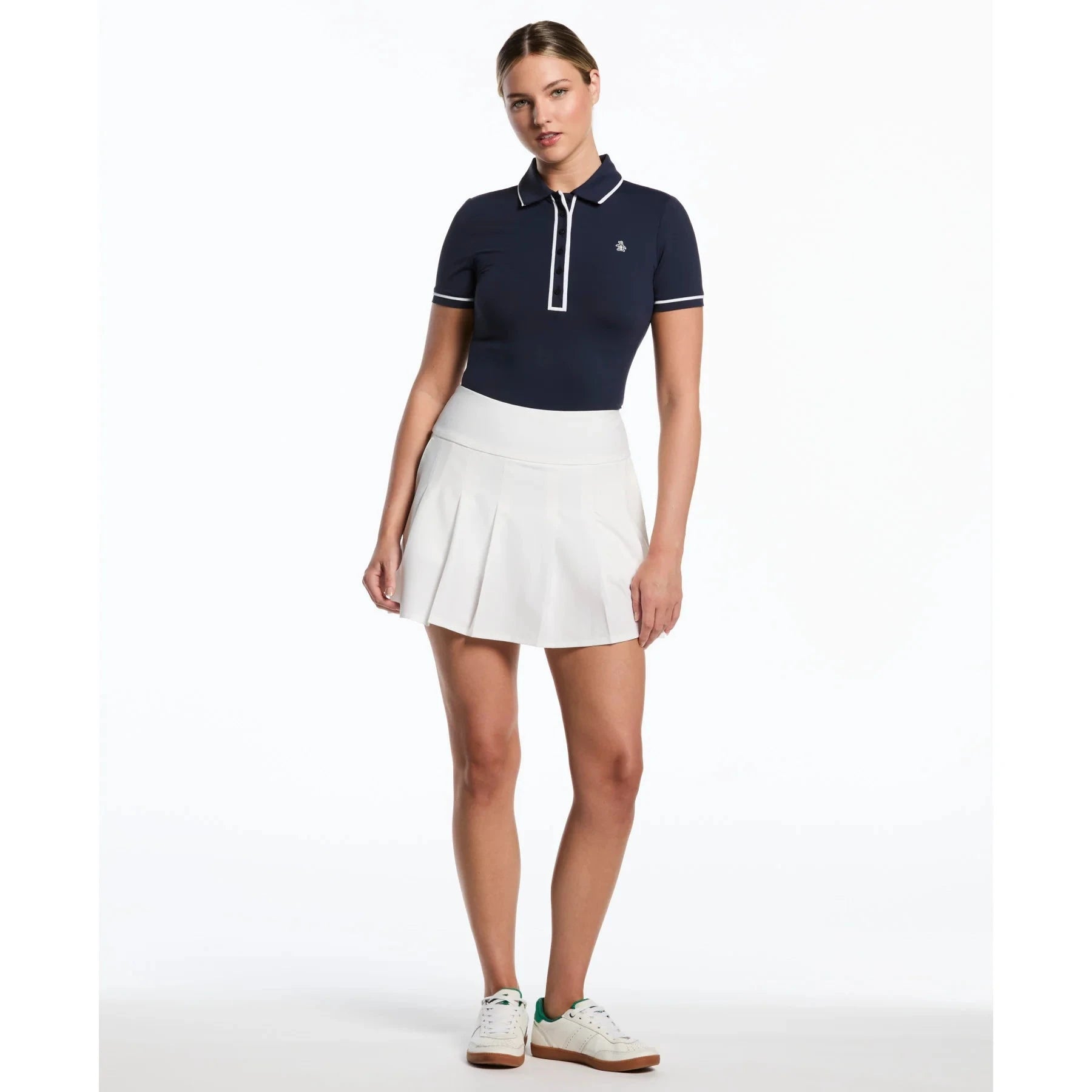 Tee off in style with this Original Penguin golf skort that effortlessly blends fashion and form. A pleated design delivers easy movement and a feminine cut with built-in shorts for comfortable coverage.