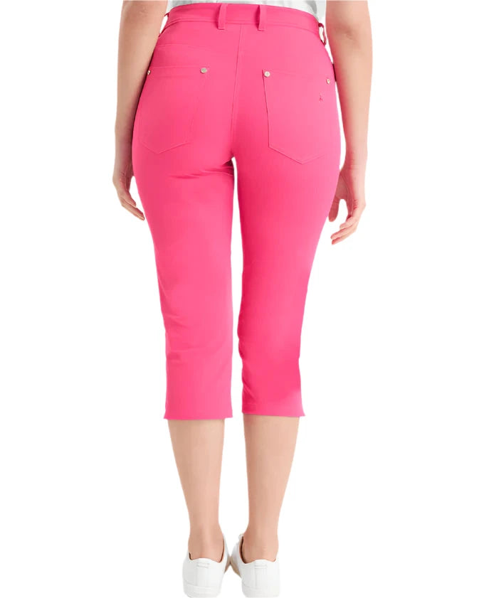 Expertly tailored Capri Trousers featuring silver metal logo rivets front and back, at pockets and double belt loops. The front and back seaming creates a tailored shape for a great fit. Soft stretchy fabric allows for enhanced freedom of movement.