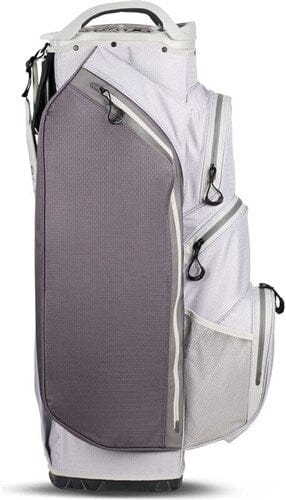 Boldy styled and fully loaded, the Woode Cart Silencer Cart Bag turns traditional golf bag design upside down. With the Silencer Protection System, each club easily locks in place to help minimize club damage and reduce the irritating noise of your clubs clanking.